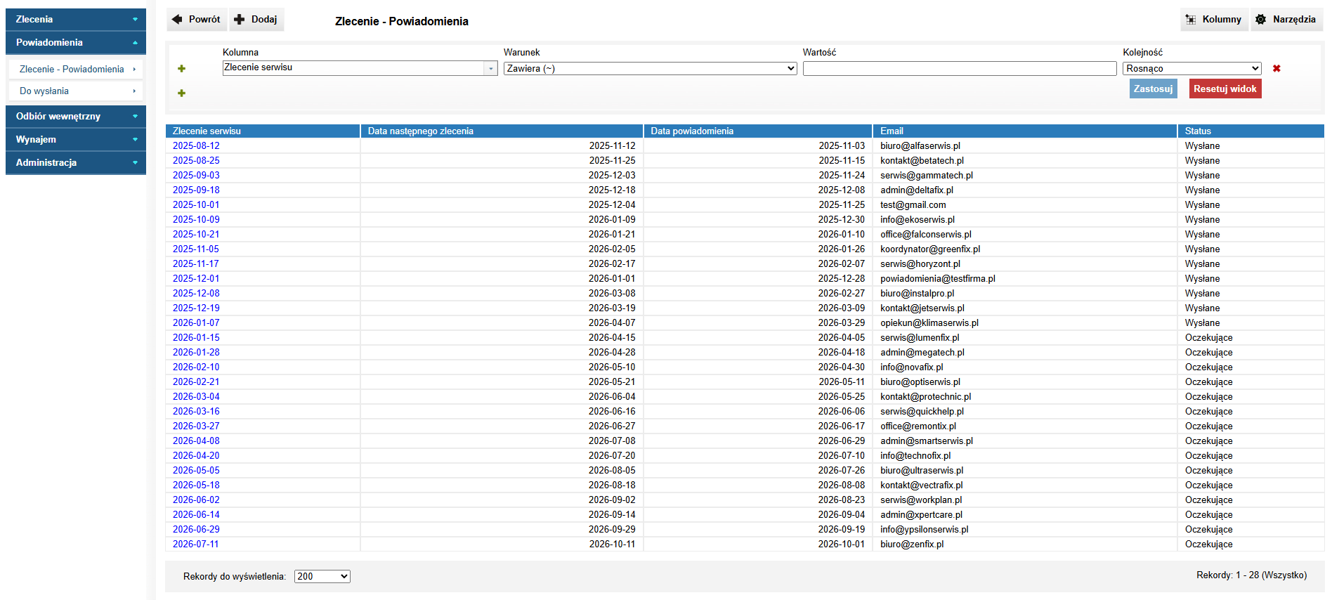 Dzięki inteligentnym kalendarzom i automatycznym powiadomieniom, użytkownik może z dużym wyprzedzeniem planować przestoje serwisowe, minimalizując ich wpływ na ciągłość procesów operacyjnych u klienta. Moduł pozwala na budowanie pełnej historii serwisowej każdego urządzenia. Funkcjonalność ta wykracza poza zwykły rejestr dat – staje się aktywnym systemem wsparcia sprzedaży usług pogwarancyjnych, pozwalając na proaktywne kontaktowanie się z klientami w celu zaproponowania niezbędnych prac konserwacyjnych. Zintegrowane podejście do opieki nad maszyną nie tylko wydłuża żywotność wózków widłowych i urządzeń technicznych, ale także buduje wizerunek wykonawcy jako rzetelnego i przewidywalnego partnera biznesowego.